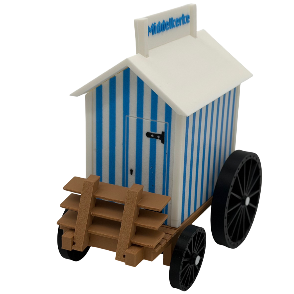 Een Duik in de Archieven Dit was geen gemakkelijk project. De badkarren waren al lang uit het straatbeeld verdwenen, en we moesten het doen met oude ansichtkaarten en vervaagde foto's. Het was een puzzel van verhoudingen en details. De bankjes en cabines hadden hun hedendaagse vorm nog, maar bij de badkar moesten we echt archeologisch te werk gaan.